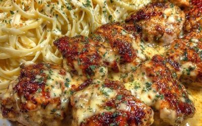 Introduction Cette recette de bouchées de poulet au beurre à l’ail et aux pâtes crémeuses au parmesan associe de tendres…