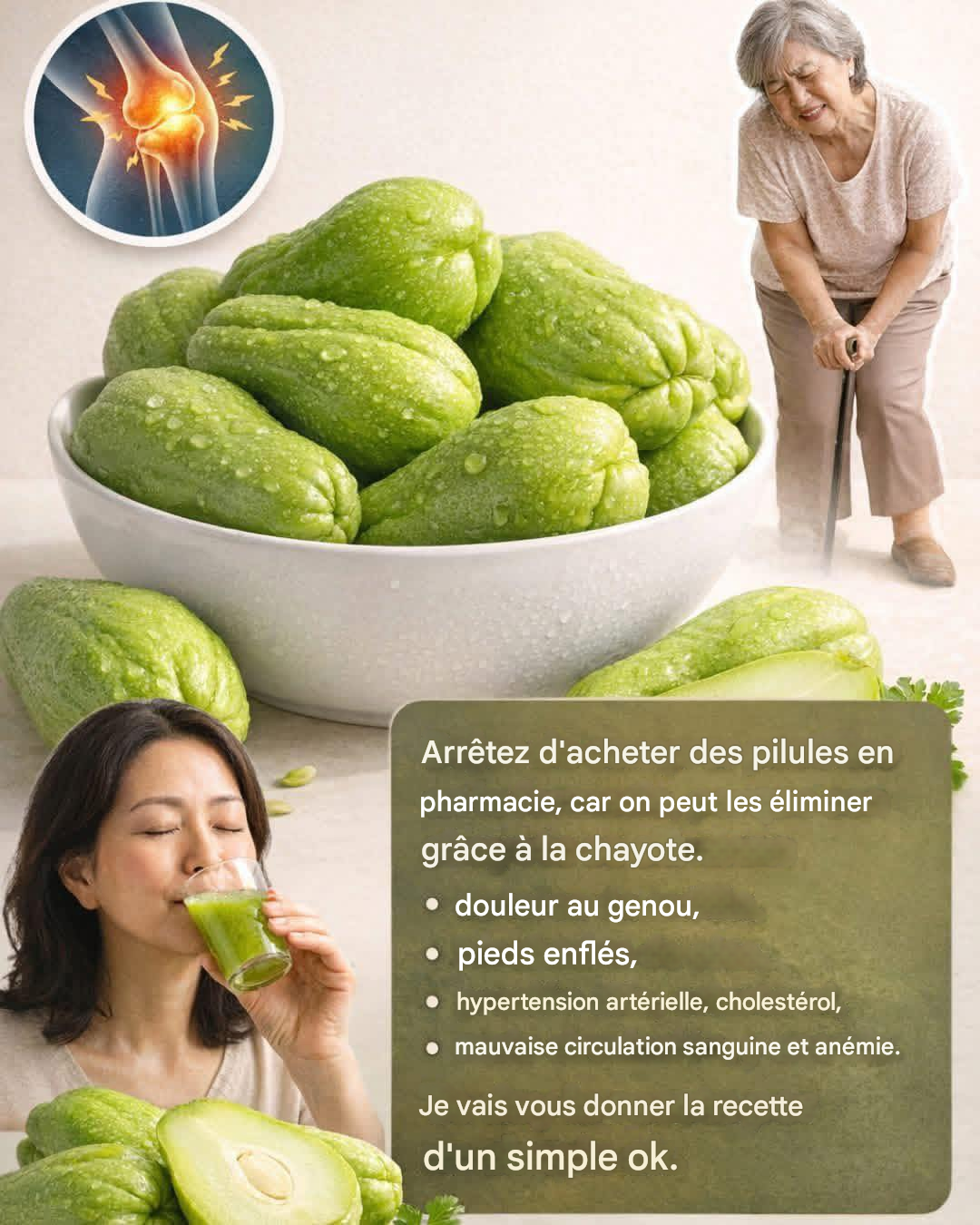 De la réduction des douleurs aux genoux et des gonflements à l'amélioration de la circulation sanguine, en passant par la régulation de la tension artérielle, la lutte contre l'hypercholestérolémie et le traitement de l'anémie, les bienfaits de la chayote s'étendent à de nombreux aspects de la santé. Suivez-nous pour un tour d'horizon complet des propriétés curatives de la chayote et découvrez comment l'intégrer efficacement à votre alimentation.