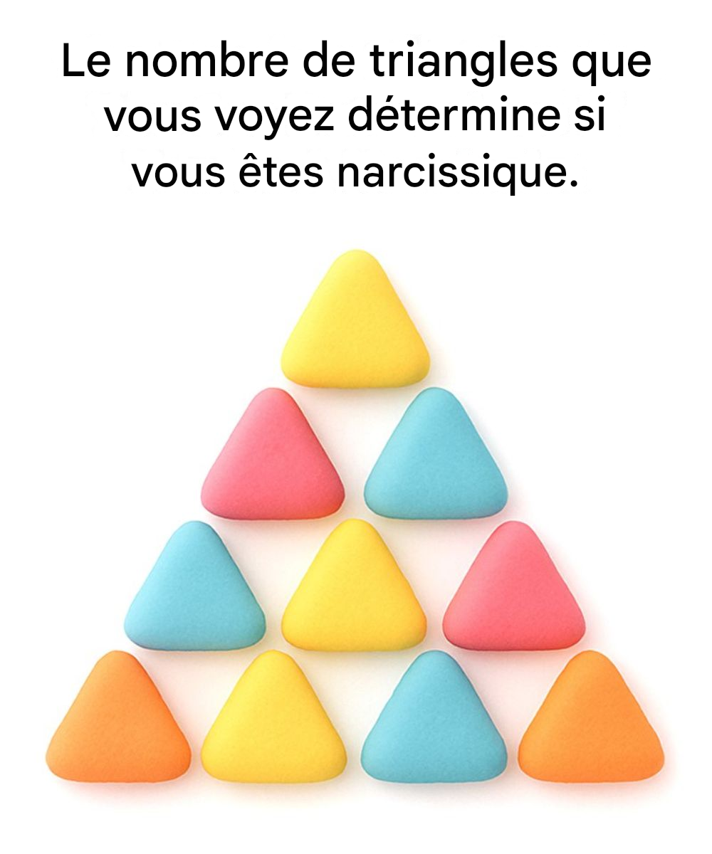 Au premier abord, l'image ci-dessus semble simple : quelques triangles colorés empilés. Mais en y regardant de plus près, on peut commencer à les compter différemment. Certains voient 9 triangles, d'autres 13, et quelques-uns affirment en voir plus de 20 en additionnant toutes les formes cachées.