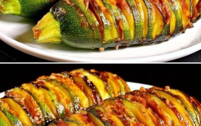 Inspirées de la célèbre technique suédoise Hasselback, ces courgettes sont entaillées en fines tranches sans être coupées entièrement, puis garnies…