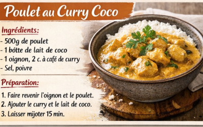 🧾 Ingrédients : 500 g de blanc de poulet 1 boîte (400 ml) de lait de coco 1 gros oignon…