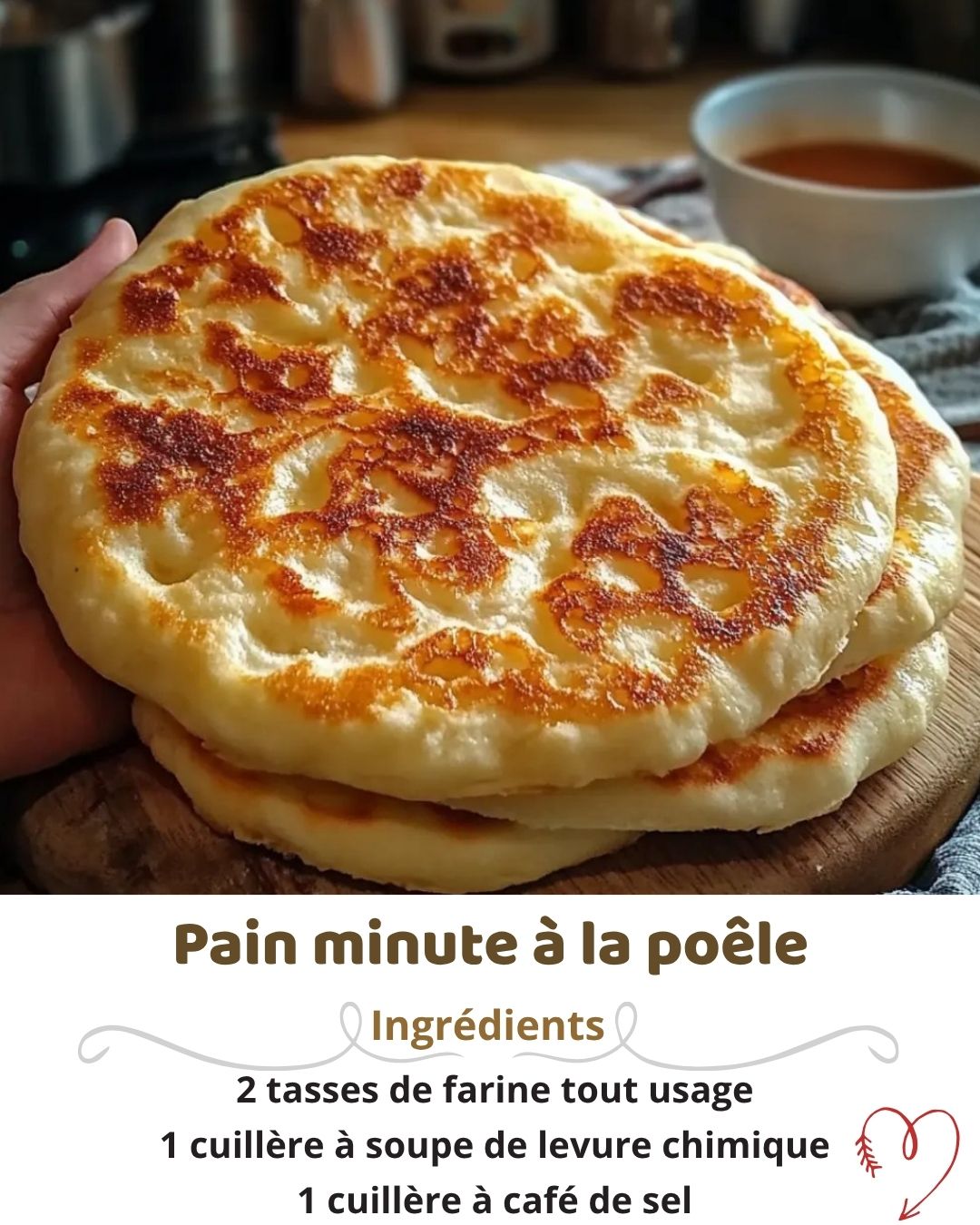 Pour réaliser ce délicieux Pain Minute à la Poêle, vous aurez besoin de quelques ingrédients simples que vous avez sûrement déjà chez vous. Voici ce qu’il vous faut :