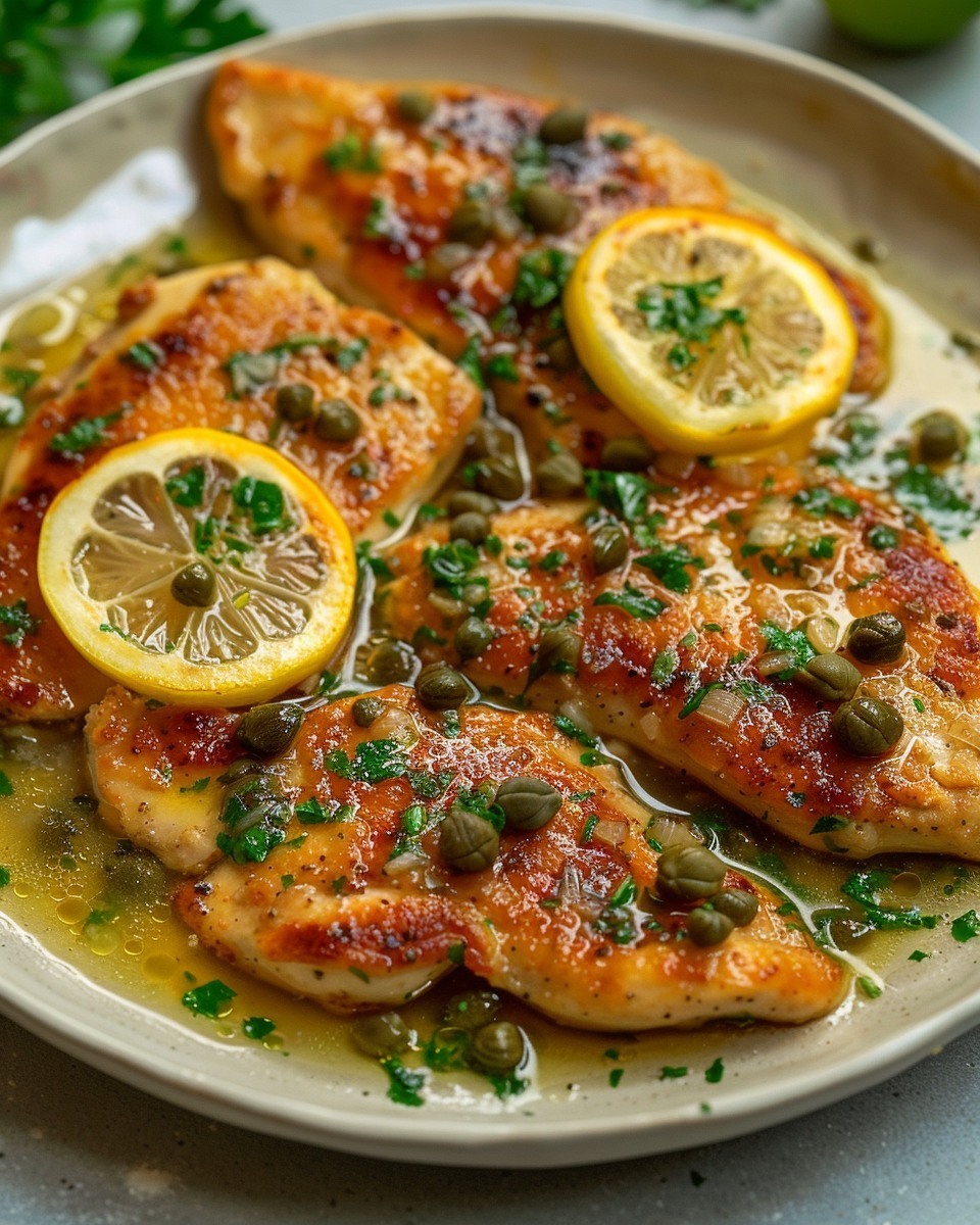 Citron : L’acidité vive du citron rehausse les saveurs naturelles du poulet et contrebalance l’onctuosité du beurre utilisé dans la sauce. Son zeste frais équilibre le côté salé des câpres et apporte une touche de fraîcheur aux saveurs salées.