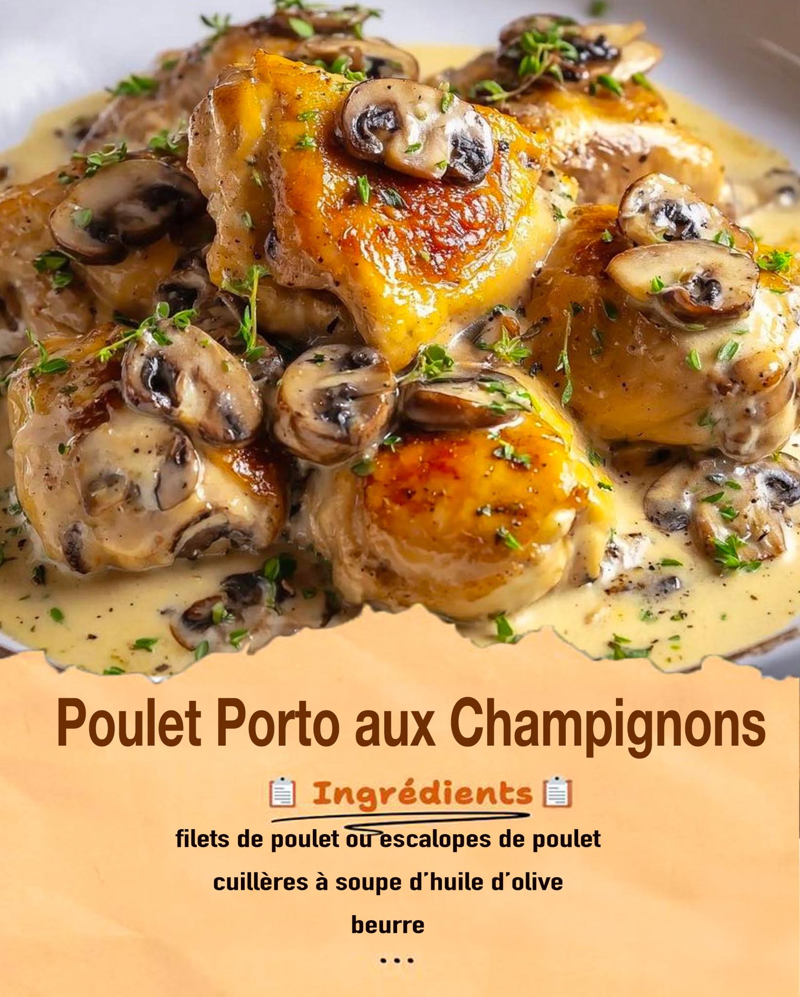 Il est des recettes qui respirent la générosité, la chaleur et l’élégance sans jamais tomber dans la complication. Le poulet au porto et champignons en fait partie. C’est un plat qui évoque à la fois les repas du dimanche en famille et les dîners un peu plus raffinés où l’on veut impressionner sans stress. Il rassemble des ingrédients simples et accessibles, sublimés par une cuisson douce et une sauce riche qui fait toute la différence.